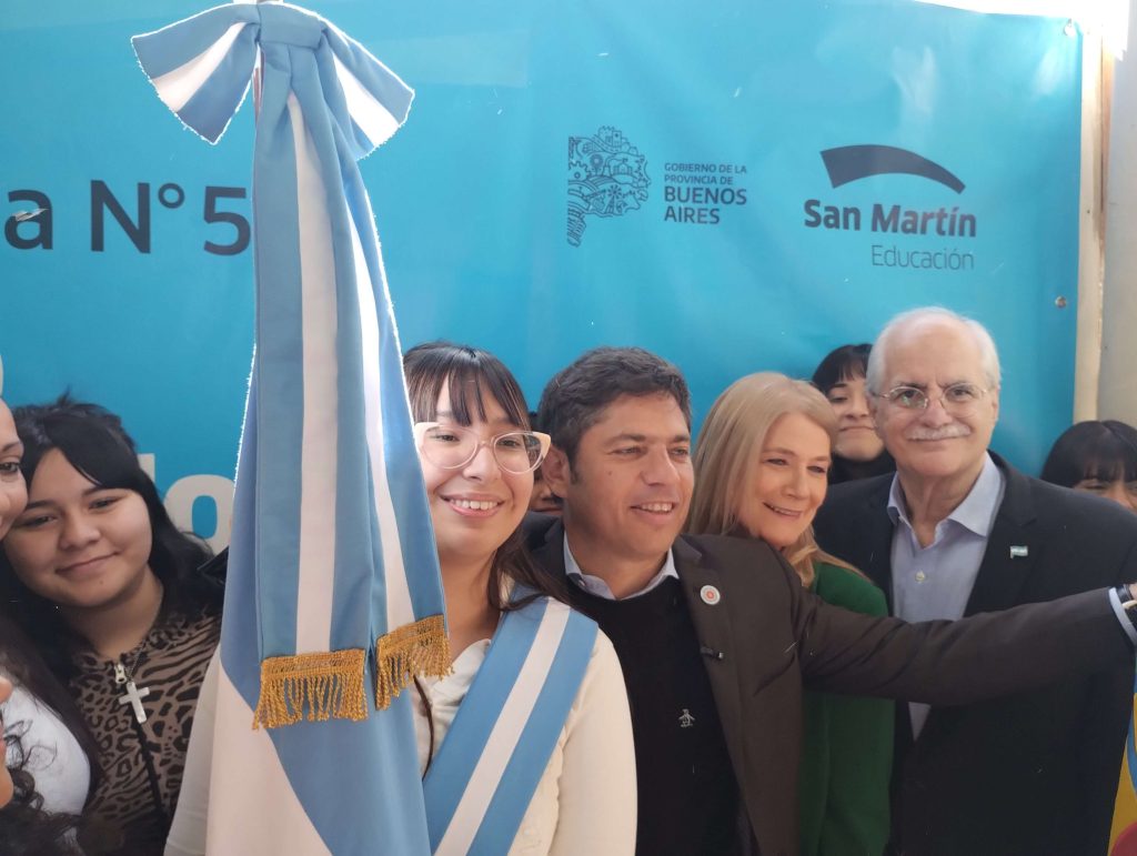 septiembre 12, 2025El gobernador de la provincia de Buenos Aires, Axel Kicillof, encabezó este viernes la inauguración formal de la Escuela Secundaria N°58 en el municipio de San Martín. Fue junto a la vicegobernadora Verónica Magario; el director general de Cultura y Educación, Alberto Sileoni; el intendente local, Fernando Moreira; el dirigente Jorge Taiana; y la directora de la institución, Cecilia Bogado.