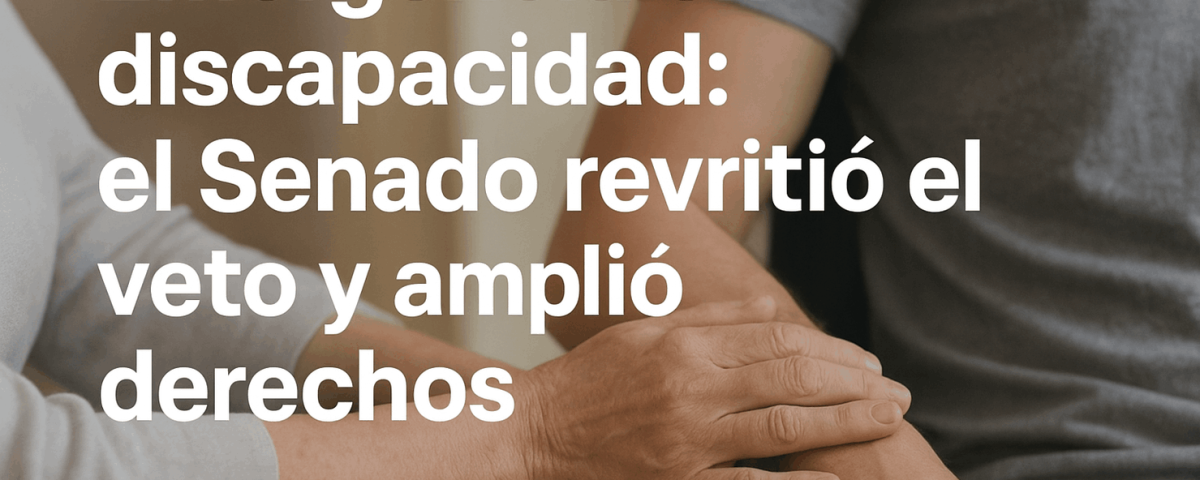 septiembre 5, 2025El Congreso confirmó la vigencia de la emergencia en discapacidad hasta el 31 de diciembre de 2027, luego de que el Senado ratificara lo aprobado por Diputados al rechazar el veto presidencial. Con esta decisión se aseguran beneficios fundamentales para los titulares de Pensiones No Contributivas (PNC) y para los prestadores del área.